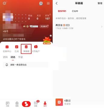 全民k歌未发布的歌在哪里?全民k歌推出之后,到现在为止也受到了全国非常多用户喜爱,这里将给大家提供大型线上k歌平台,觉得自己歌喉不错的话,可以和其他不同城市的陌生歌手一起角逐一下呢。全民k歌上能够自由创作专属作品,像是平时喜欢听的歌都可以进行翻唱,这里准备了相当强大的k歌系统,不仅能够帮助用户进行清晰收音,演唱结束后还能得到非常专业的评分,有需要的话还可以将制作的作品保存起来,找到合适的时间发布都是不会有任何问题的。像是一些未发布的歌曲都会自动存放在草稿箱中,有时候正想要发布的时候却忘记存放的位置了,相信下面这篇操作教程能够给你提供帮助呢。