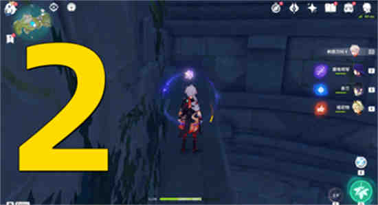 2、然后在6号位置点亮风元素的方碑,到达如下位置,借助风场到上方获得星核一个;