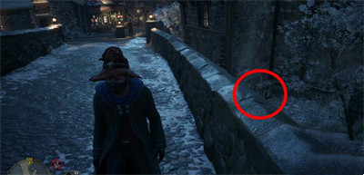 【霍格莫德-神器萝卜】商店对面的屋子后方。