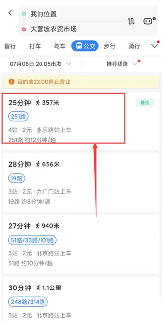 2、在接下来的页面上方,如是从所在位置出发,那么只需在“输入终点”处输入目的站点名称,如“大营坡”。见下图