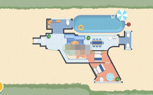 2、先放橙色的【图案】比较好找一点,再放【泳池】,白色的【图案】放中间。