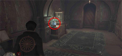 从传送点出来,直接进入禁书区,一直往里走,在桌子上拿到雕像。