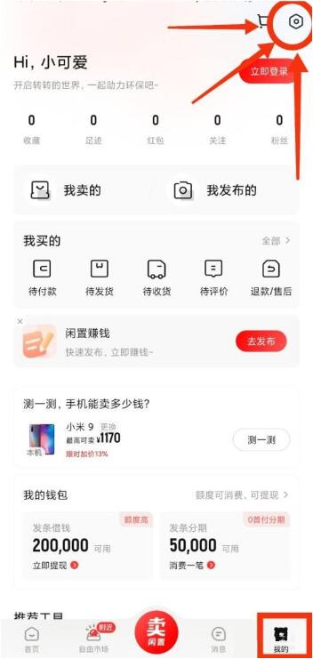 2、然后在转转主页当中找到右下角的(我的)然后点击右上角的设置;