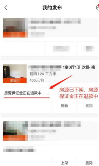 打开我的发布后,选择你要下架的房源,然后点击下架,如下图所示: