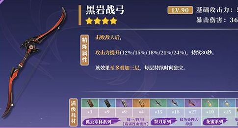 (4)若是作为大招流的队伍,没有五星武器时,四星【曚云之月】会是好选择。