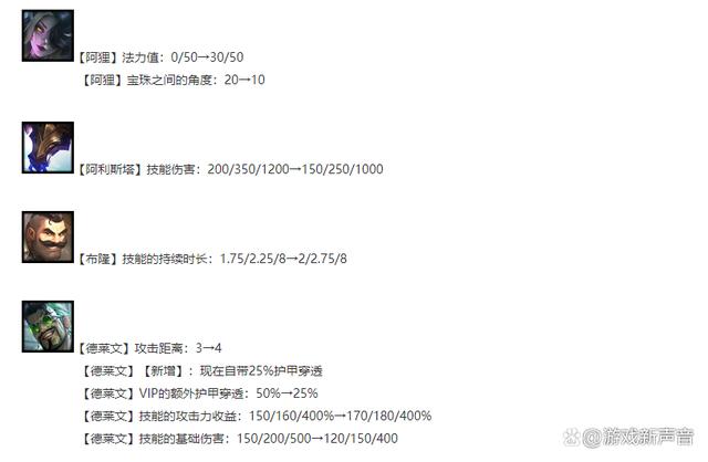 然后我们来看看几张五费卡的调整,谈不上削弱或者增强,因为影响都不是很大,除了特定的阵容基本都不拿,不过值得一提的是,似乎名流加里奥或者名流卡莎可以重新登场了,伤害有了一定的加强。