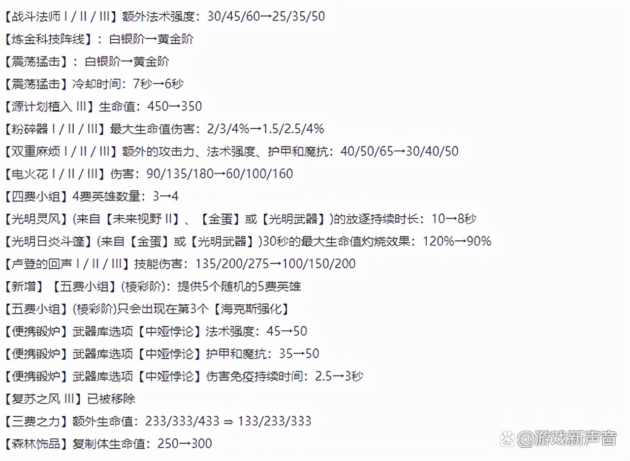 那我们就通过更新的内容来简单地了解一下,哪些更新是重要的,哪些是不痛不痒的,哪些阵容是可玩的,哪些阵容是不可取的。