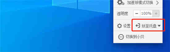 右键点击任务栏上的加速球”,在弹出的菜单中点击【返回桌面】即可。