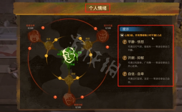 大多数游戏自卑可以通过打篮球足浴恢复,如下图,玩家可以在游戏的情绪界面查看自卑程度,如果自卑程度比较严重,最快速的恢复方法就是让角色去进行足浴按摩(如下图),按摩结束后角色自信增加了10点。