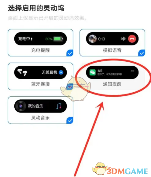 4、进入灵动坞开关界面,选择要关闭的灵动坞功能,取消勾选即可关闭。