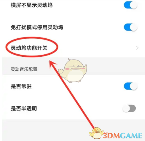 3、进入高级设置界面,点击“灵动坞功能开关”选项。