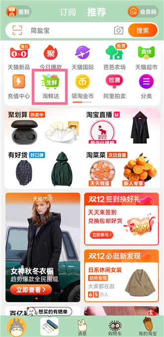 本文介绍淘宝淘鲜达如何预约次日订单?淘鲜达是淘宝中的一个功能,在淘宝淘鲜中用户可以购买到非常新鲜的瓜果蔬菜等生鲜,用户想要购买什么东西都是可以直接点开,在里面的搜索框中进行搜索,将想购买的商品都放到购物车中,之后一起结账,最快一个小时就可以将用户购买的商品送到用户的手上,保证都是新鲜的,购买的熟食也都还是热的。而有的小伙伴需要预约订单,让购买的商品第二天再送达,但不知道要怎么预约,不要着急,下面就让小编来分享一下淘宝淘鲜达如何预约次日订单吧!