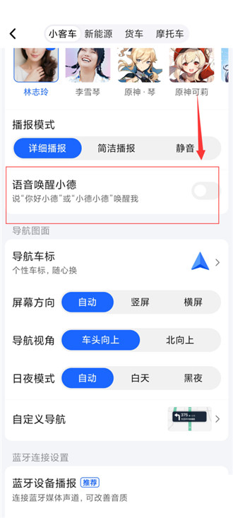 3、最后在导航设置页面,将【语音唤醒小德】右侧的开关打开即可。