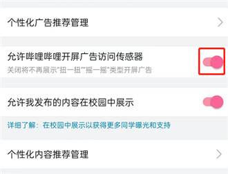 3、最后将允许哔哩哔哩开屏广告访问传感器右侧开关关闭即可。