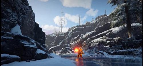 位于地图的左上角。这里的可以说是一个天动地寒的地方,玩家们可以在结冰的湖面和下着雪的树林间打斗。这个区域的元素主要以森林、雪山、冰湖为主,而且我们的角色在此区域打斗过久会出先寒冷、失温的现象,此负面效果可以间接的导致角色怒气自动下降,也是非常有趣的。