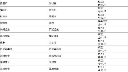 6、扭蛋机/弹珠机/射击店/健身房/铁桶温泉/流水座椅/桑拿/自动贩卖机/茶铺椅子: