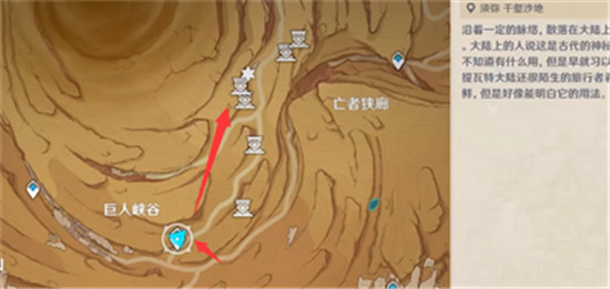 1、传送到巨人峡谷右下的锚点【须弥 千壑沙地】锚点处向上移动。