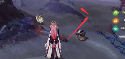 6、然后继续向北移动,向左前方看可以在岩石中找到一个圣章石。