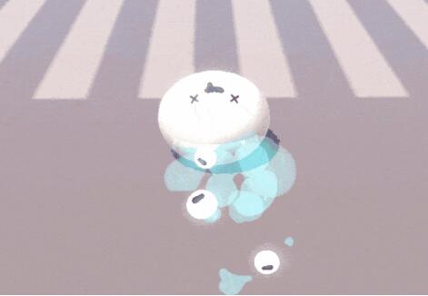 圆圆子动作展示:滚动时身后会有冒着蓝色水蒸气的芝麻馅儿汤圆。