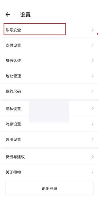 3、在得物设置中,点击“账号安全”;