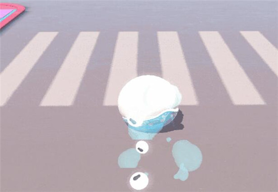 圆圆子动作展示:滚动时身后会有冒着蓝色水蒸气的芝麻馅儿汤圆。