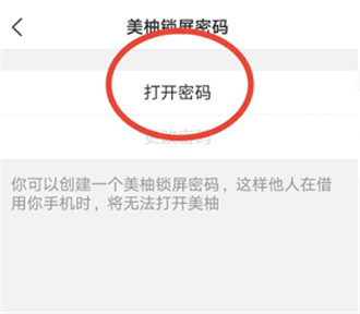 第三步:在美柚锁屏密码的界面,点击“打开密码”。