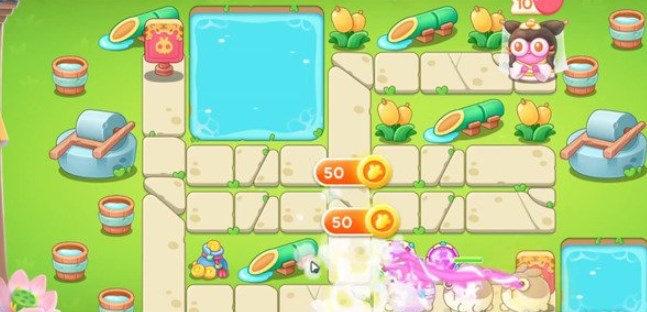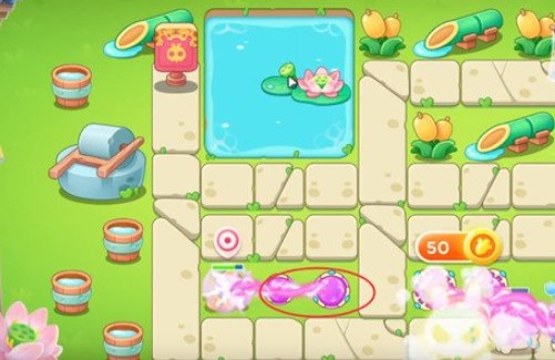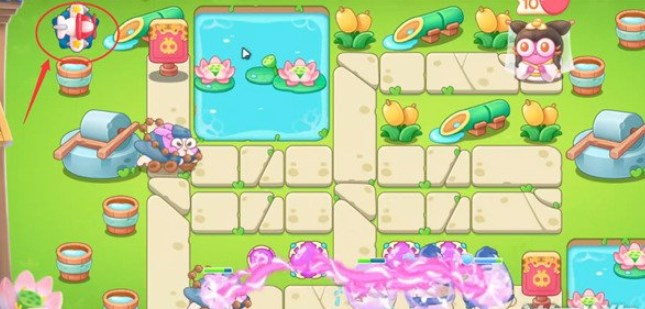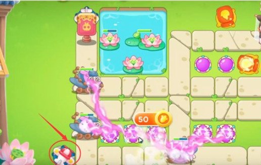 如下图位置所示摆放一个火瓶子,并且将方框内补满魔法球并升至满级,此时最左方的魔法球和飞机塔负责将左方的障碍物全部清理干净,而右方的魔法球则负责打兔子