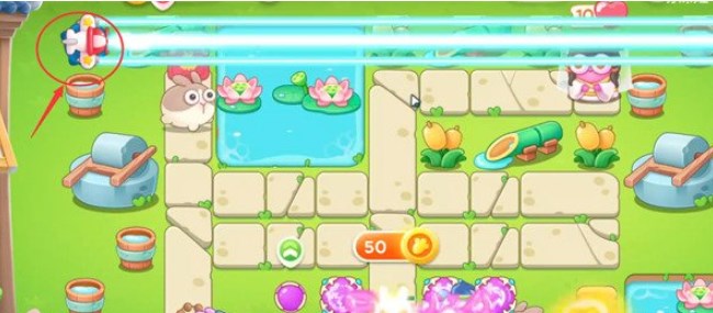 在如图所示位置放置一个飞机塔并将其升至满级,飞机塔可以对右侧的一整行的障碍物和兔子造成穿透伤害,可以快速清理一行的障碍物。
