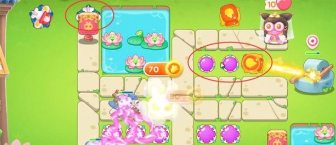 在如图所示的位置补上2个魔法球,这两个魔法球优先清理左边的钱币箱,同时四个魔法球的火力也能轻松通过第二波