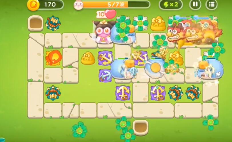 7、第七波我们只需要在左下角位置放满船锚,左上角放3个分裂箭即可稳稳过关了。