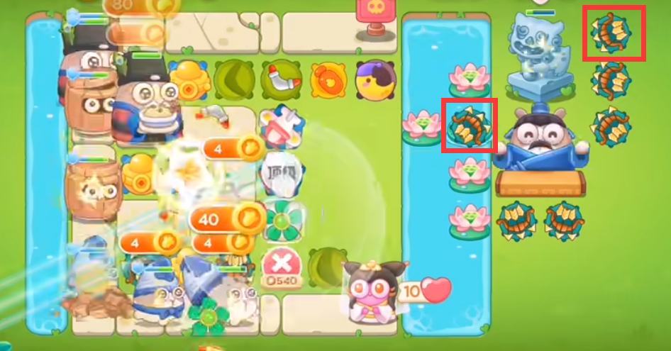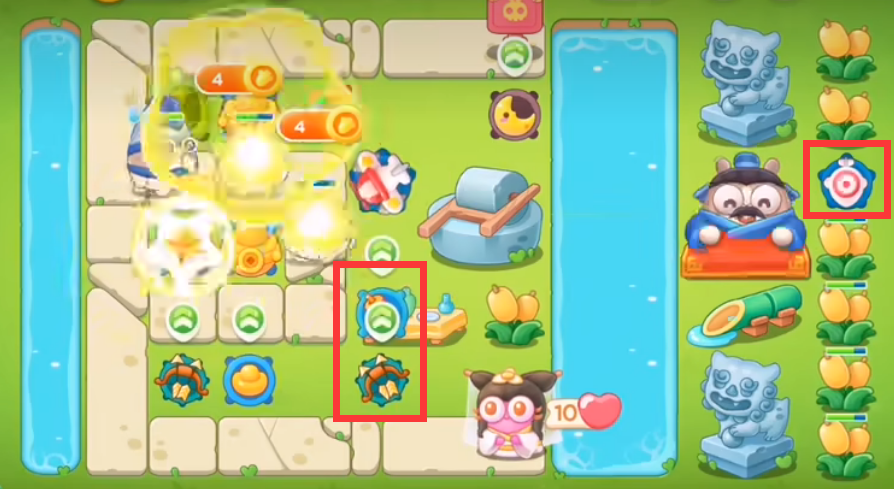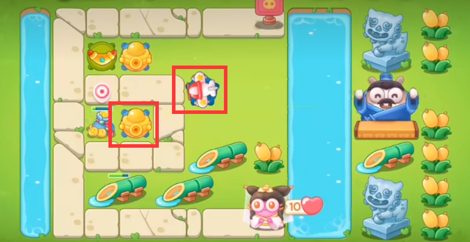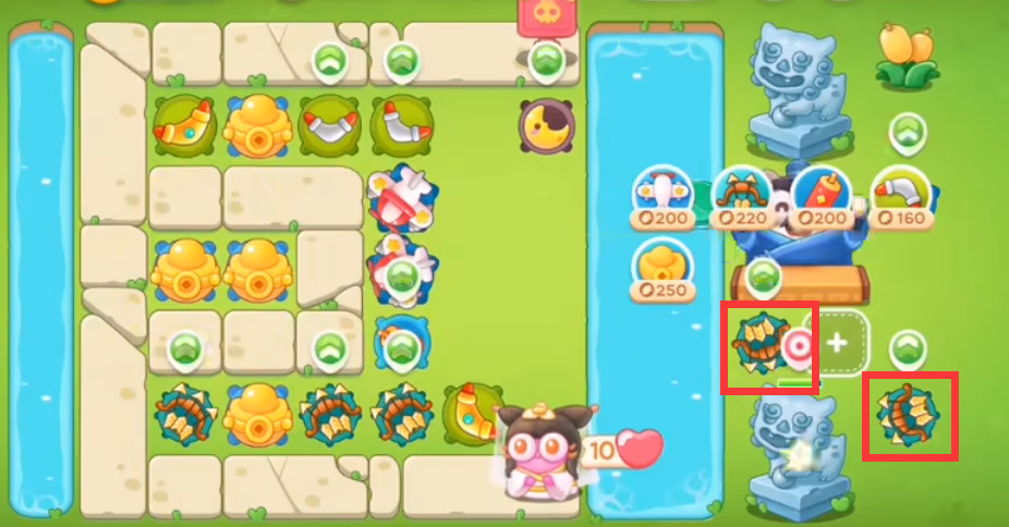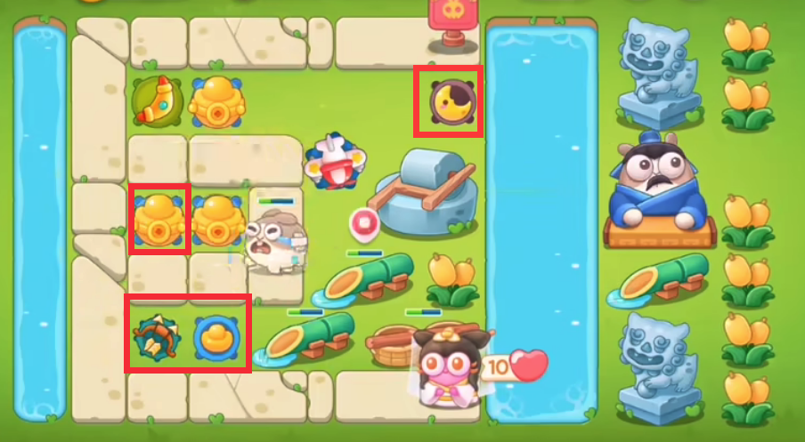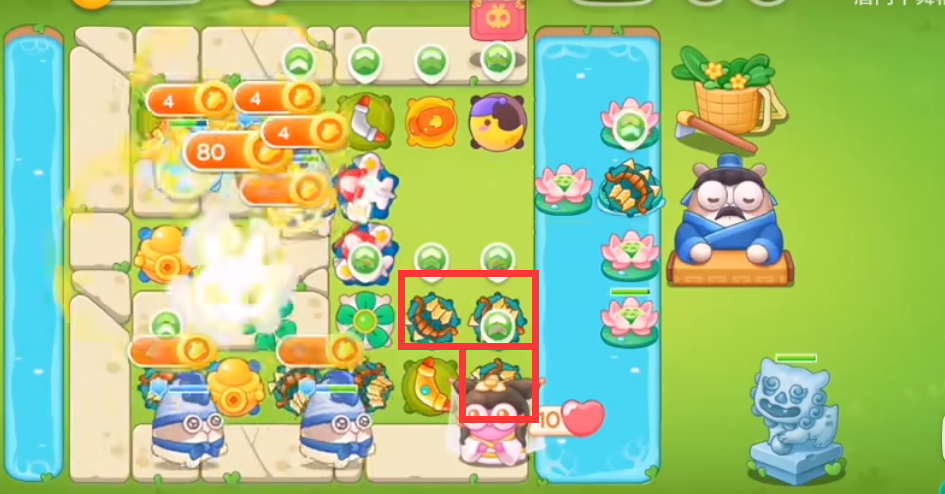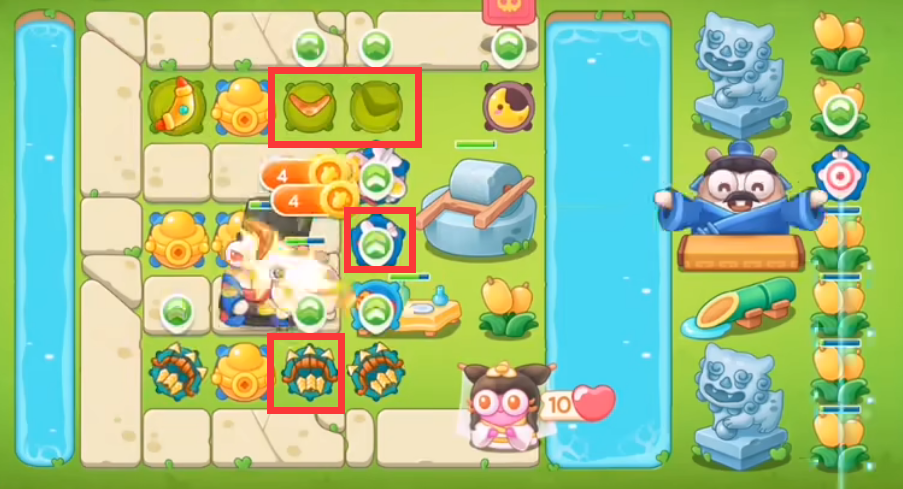 7、第七波,中上礼物盒变成了炮塔,中左下礼物盒变成了风扇。