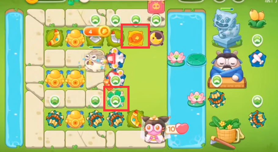 9、右下方道具清掉后,拆下方两个多重箭,换成右上一个多重箭,荷叶上一个多重箭。