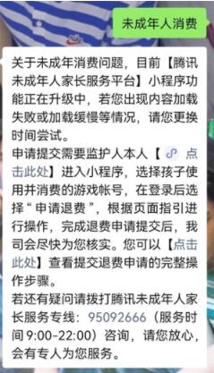 3、我们点击客服发送文本中的【点击次数】,进入未成年人退款页面并选择消费情况。