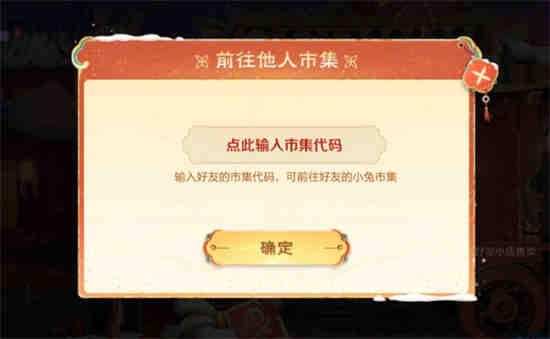 在小兔市集右下角找到“串门”,输入代码,前往其他玩家的市集。
