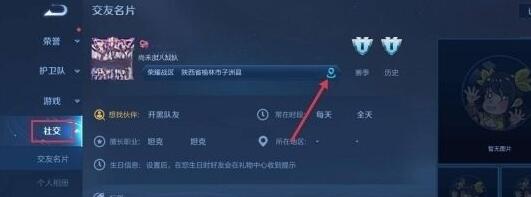 2.点击左下角的“社交”,进入社交界面后可以看到右边的荣耀战区选项,点击战区右边的定位图标;