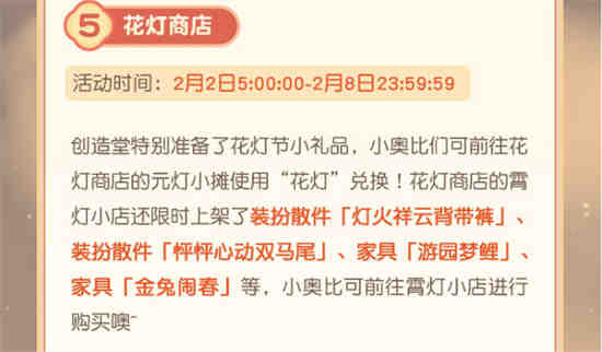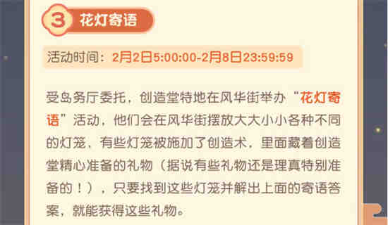 花灯寄语,燃灯祈愿。「花灯节」即将到来,届时花灯签到、花灯寄语、花灯新语、花灯商店等活动也即将于2月2日开启。