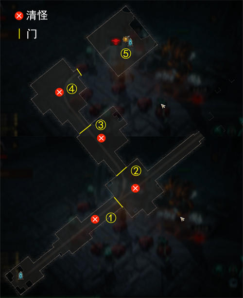 3、① 清掉小怪开门 → ②和娜玛莉对话,清掉小怪开门 → ③清掉小怪开门 → ④清掉召唤阵的小怪开门 → ⑤击杀3波随机小BOSS,击杀萨格斯,结束副本。