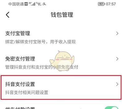 3、进去抖音钱包管理之后,点击抖音支付设置。