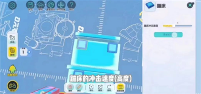 1.先用冰面搭配蹦床,蹦床的冲速度是可以更改的,冰面需要添加运动器;