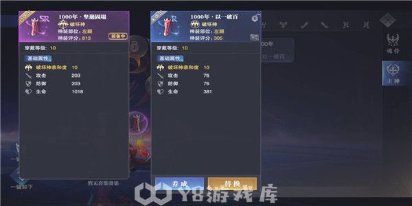 神装是可以培养的,低品质神装可以拿来给高品质神装提升年份,年份越高属性越多 对应神位亲和度也越高,亲和度高了还可以解锁神位天赋技能。