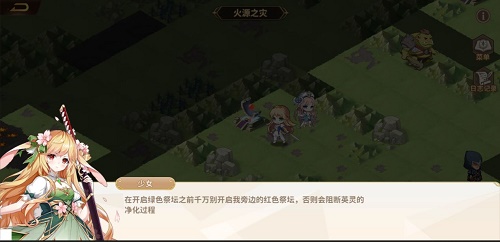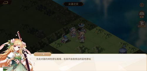5、往中间走,我们会看到红色的祭坛,这时小姐姐就提到了绿色,就能知道,绿色开了后,才能开红色,那么,我们就把红色打开。