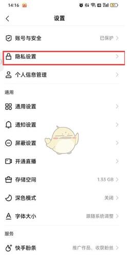 3、进入到设置的页面之后点击【隐私设置】;