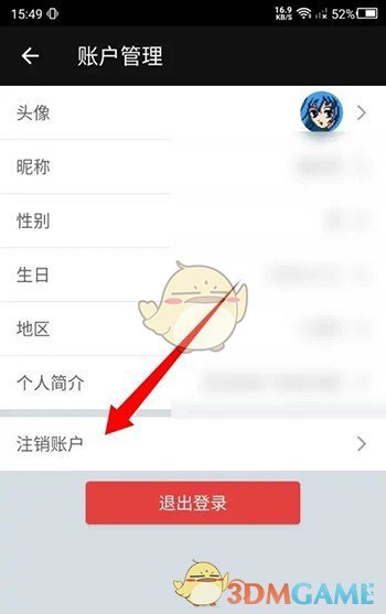 3、点击注销账户。