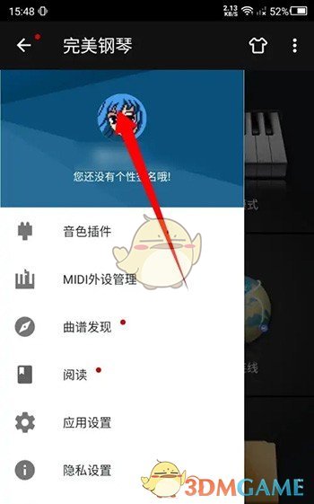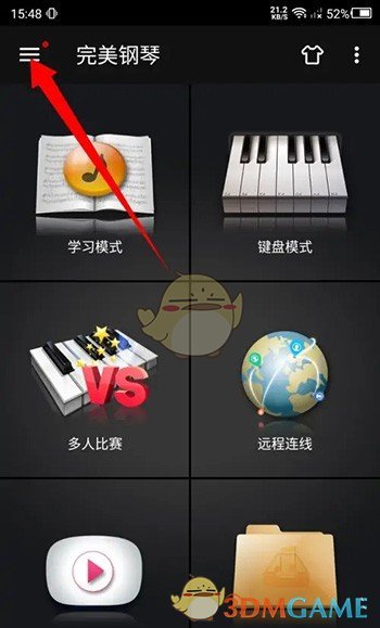 1、在完美钢琴软件内点击左上角的三横图标。