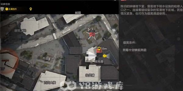 下水道撤离点的位置如下图所示,在岸风巷附近,在游戏开局10分钟后就会开启;