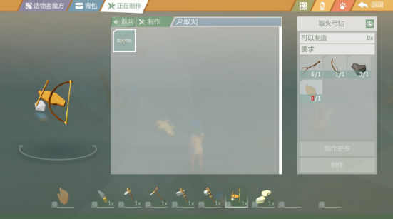 小伙伴们可以通过砍伐树木以及收集部分其他材料来制作一把“取火弓钻”。