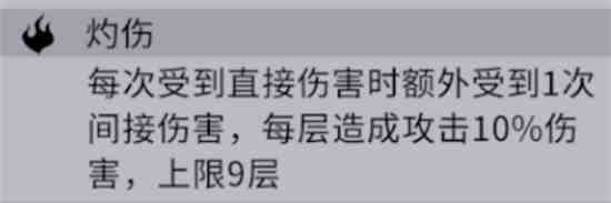 与中毒不同的是,重复受到灼伤BUFF并不会触发灼伤伤害,而是受到直接伤害时触发灼伤伤害。