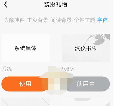 3、这时我们看到默认的是【系统黑体】,我们可以选择其它字体。我以【汉仪书宋】为例,我们点击【汉仪书宋】下方的【使用】