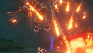 「兆载永劫龙兽」向着玩家位置发起一次高速的冲击,期间「兆载永劫龙兽」的头顶弱点处于暴露状态,可以通过攻击弱点的方式使其瘫痪。