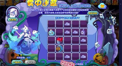 蓝影幽灵主带着小宠物们隐藏于迷雾中,正和你捉迷藏呢!召唤蓝焰驱散迷雾,找到小宠物,完成活动即可获得进化资格!